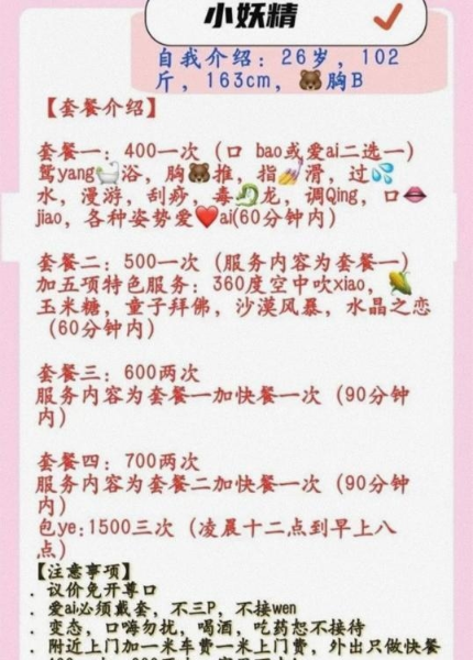 单次价格:单人3-5,双飞8米一个小时,不限制次数 包夜价格:12,23-9点 服务项目:常见的都有,包括舌吻, ...